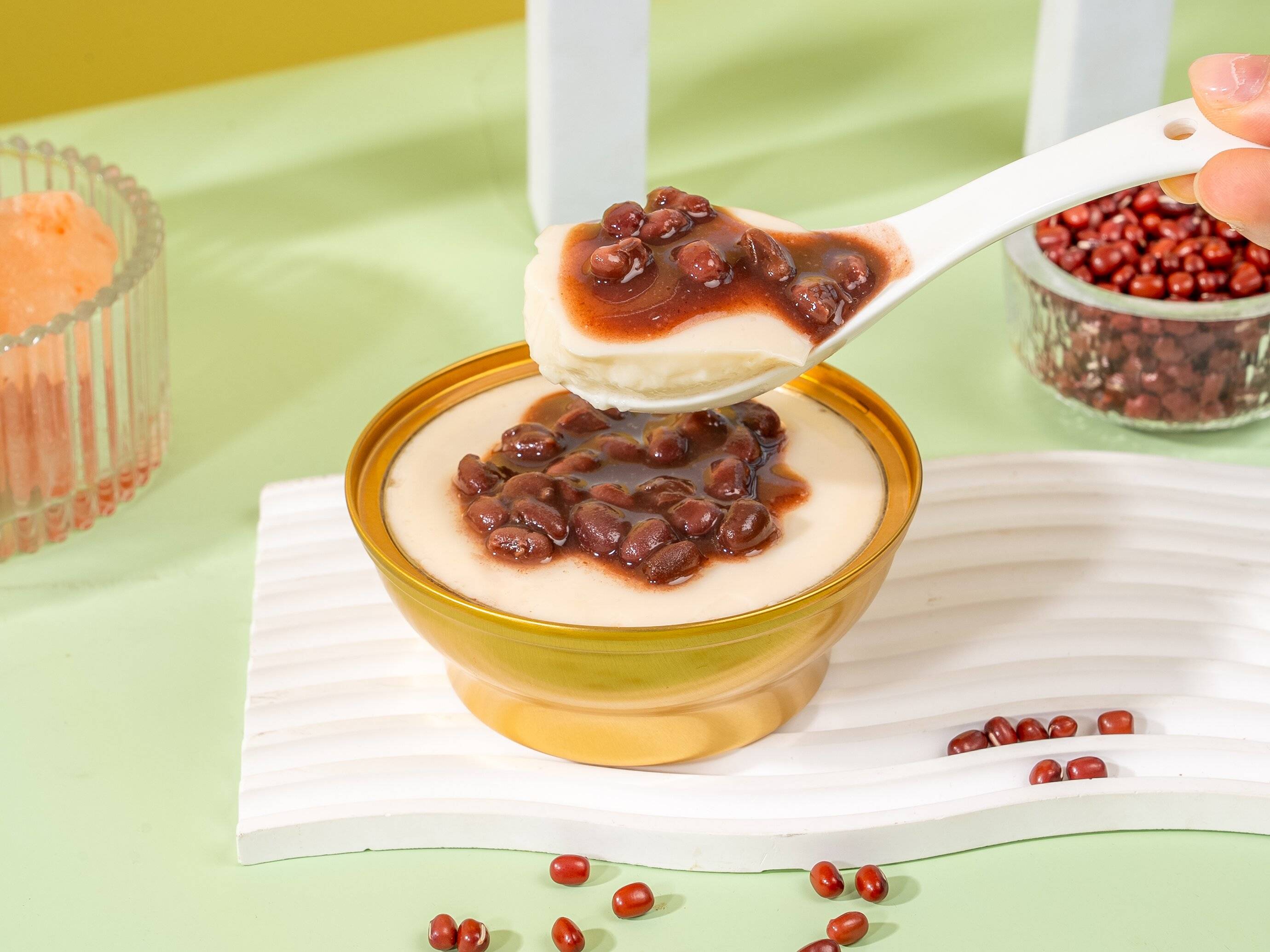 Milk Custard with Red Bean , Rich milk aroma , Low fat and full , Nutritional balance